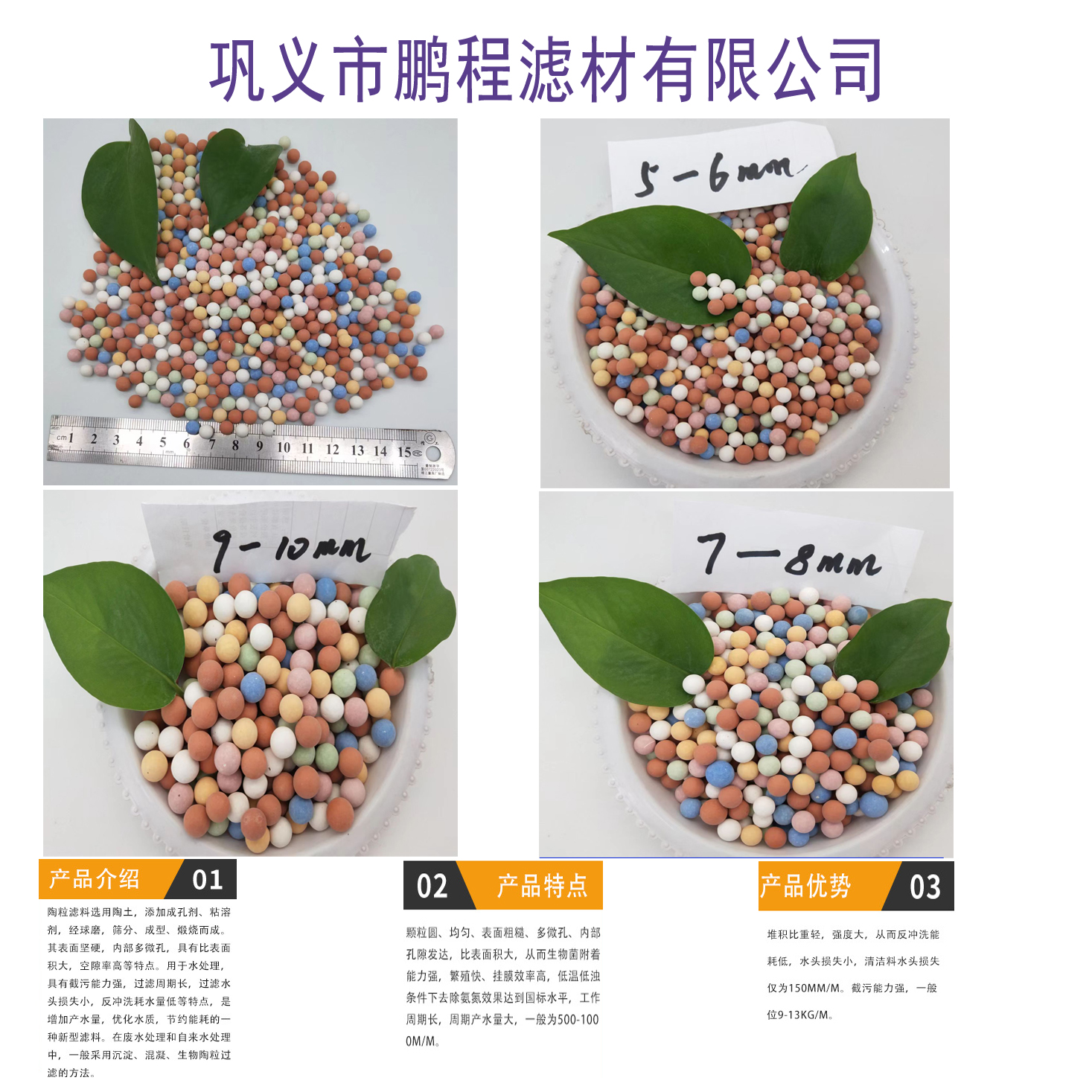 鞏義市鵬程濾材有限公司一家水過濾濾料 ——陶粒濾料生產(chǎn)廠家鵬程濾材陶粒濾料有黏土陶粒 生物陶粒 頁巖陶粒還有絢麗多彩的養(yǎng)殖花卉陶粒濾料。根據(jù)使用環(huán)境不同,陶粒產(chǎn)品齊全廠家歡迎您咨詢。