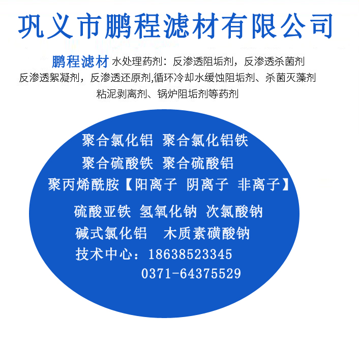 聚合氯化鋁 聚丙烯酰胺 聚合氯化鋁鐵 聚合硫酸鐵 硫酸亞鐵 聚合硫酸鋁 次氯酸鈉 氫氧化鈉 木質(zhì)素磺酸鈉等水處理藥劑 ——工業(yè)級 食品級 飲用水劑 處理級——鵬程濾材產(chǎn)品 型號齊全 歡迎咨詢