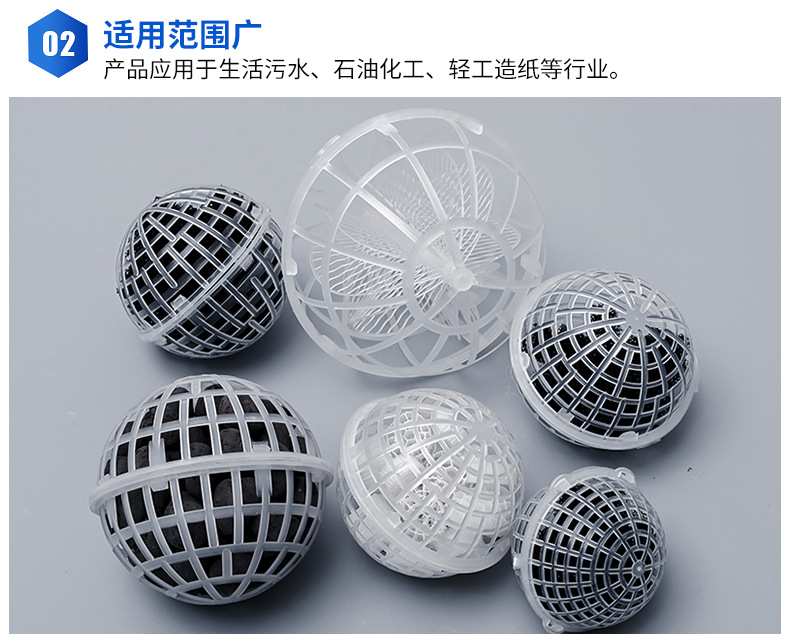 多孔球形生物懸浮球填料為什么也屬于一種組合填料,因?yàn)閼腋∏蛱盍暇哂腥Ⅲw結(jié)構(gòu),里面可以填充聚氨酯海綿 火山巖  陶粒 沸石 脫氮填料 纖維濾料等生物水處理濾料【填料】。